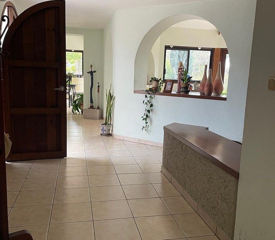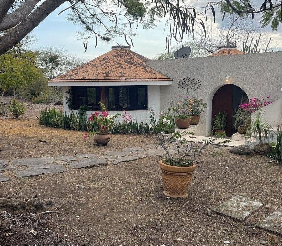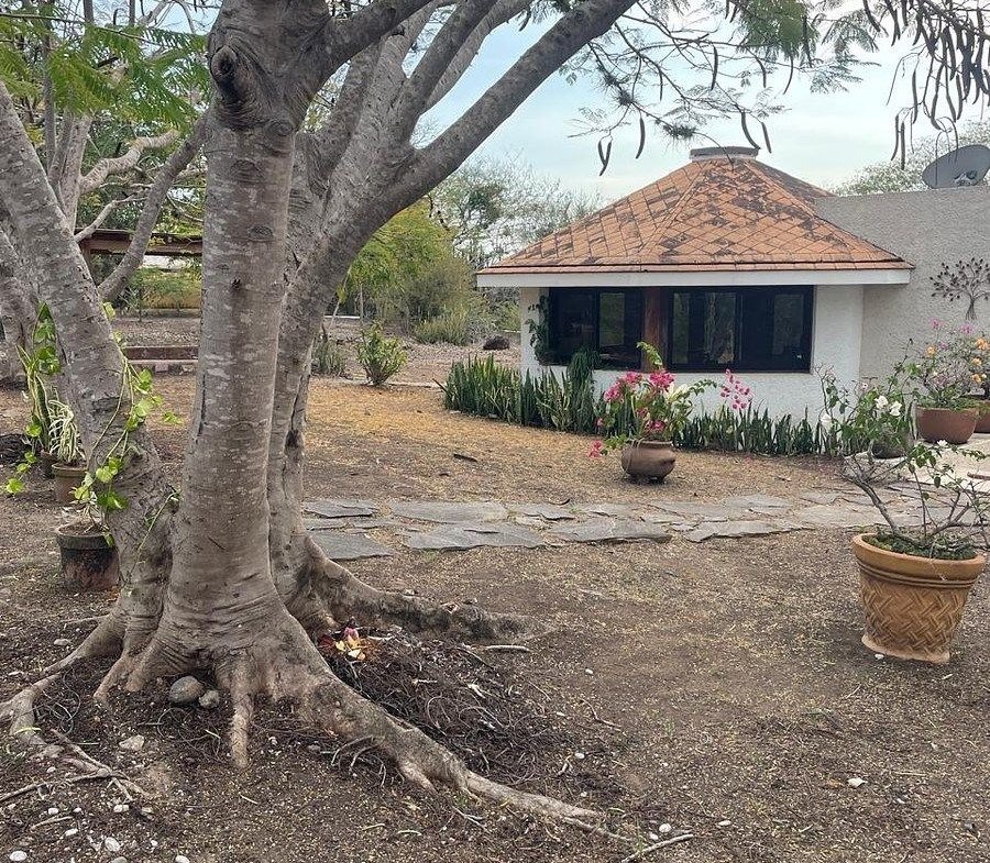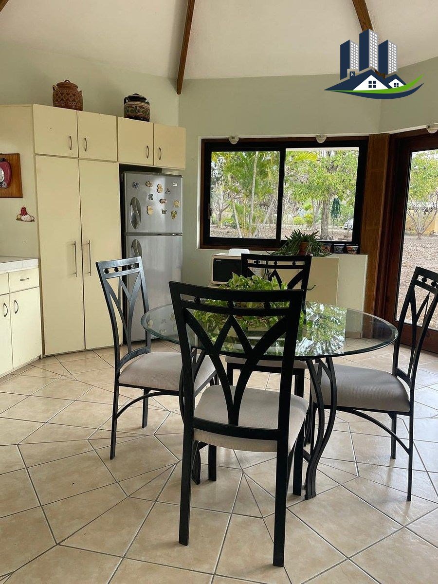 La propiedad se encuentra dentro de un amplio terreno rodeado de abundante vegetación y un jardín extenso , perfecto para relajarse, disfrutar del aire libre o convivir en un entorno natural, la casa es de un solo nivel , lo que la hace cómoda y funcional , con espacios abiertos y bien iluminados que brindan un agradable sensación de amplitud.