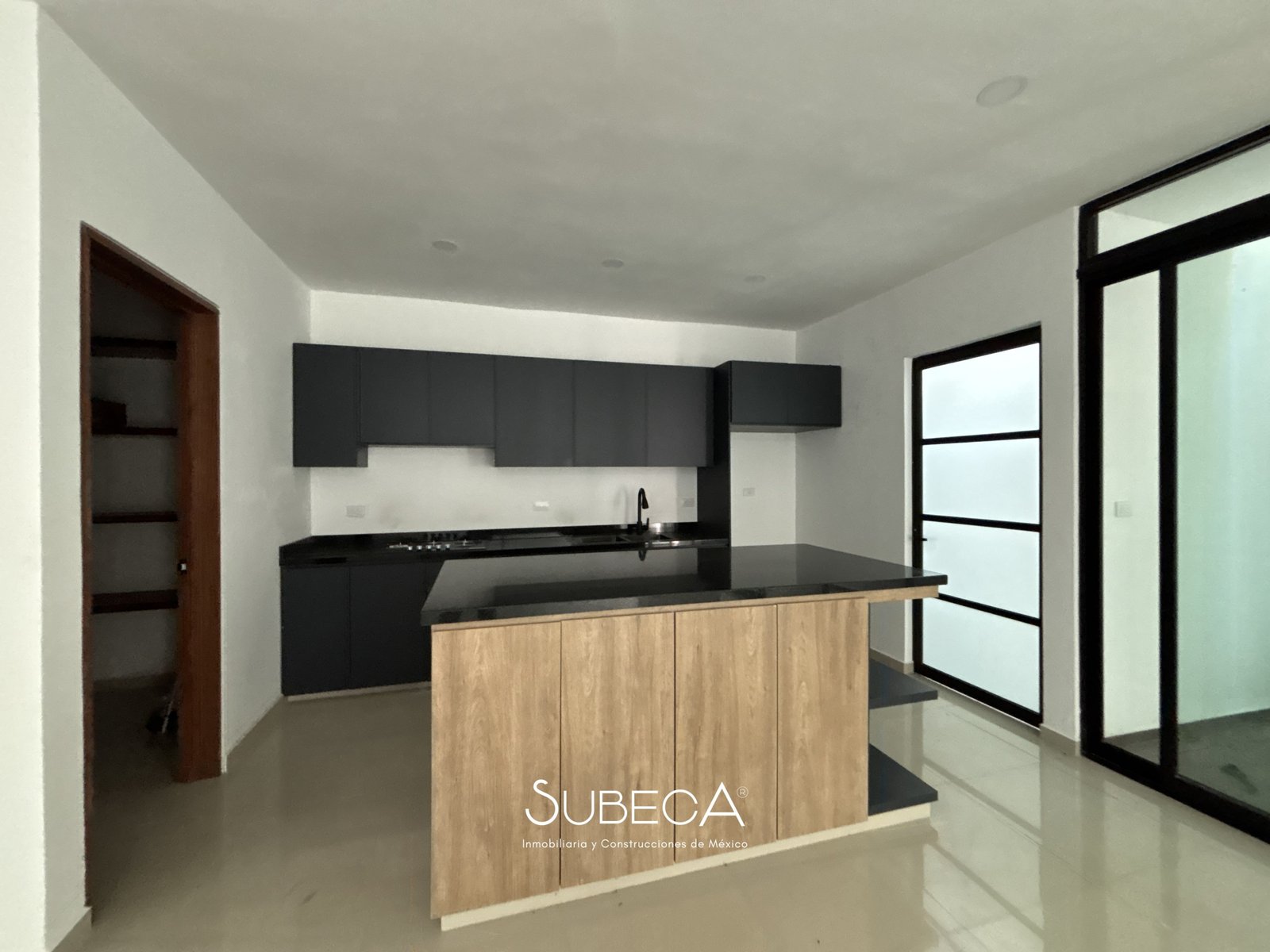 *Cocina integral con barra de granito y alacena